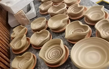 Többféle agyagból készülnek használati és épületkerámiai darabok, többnyire egyedi megrendelésre. Az elkészítési idő emiatt több hónap is lehet, viszont a végeredmény egy teljesen személyre szabott alkotás lesz. Az utcanévtáblákra örök garanciát adunk.